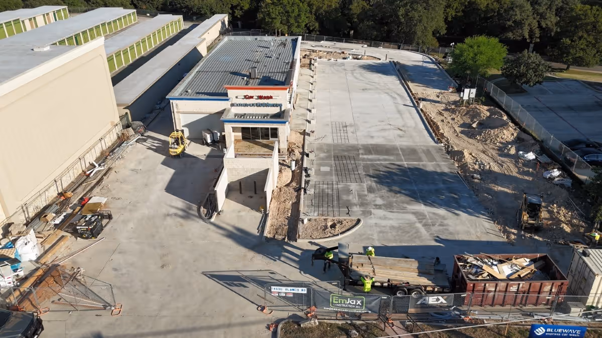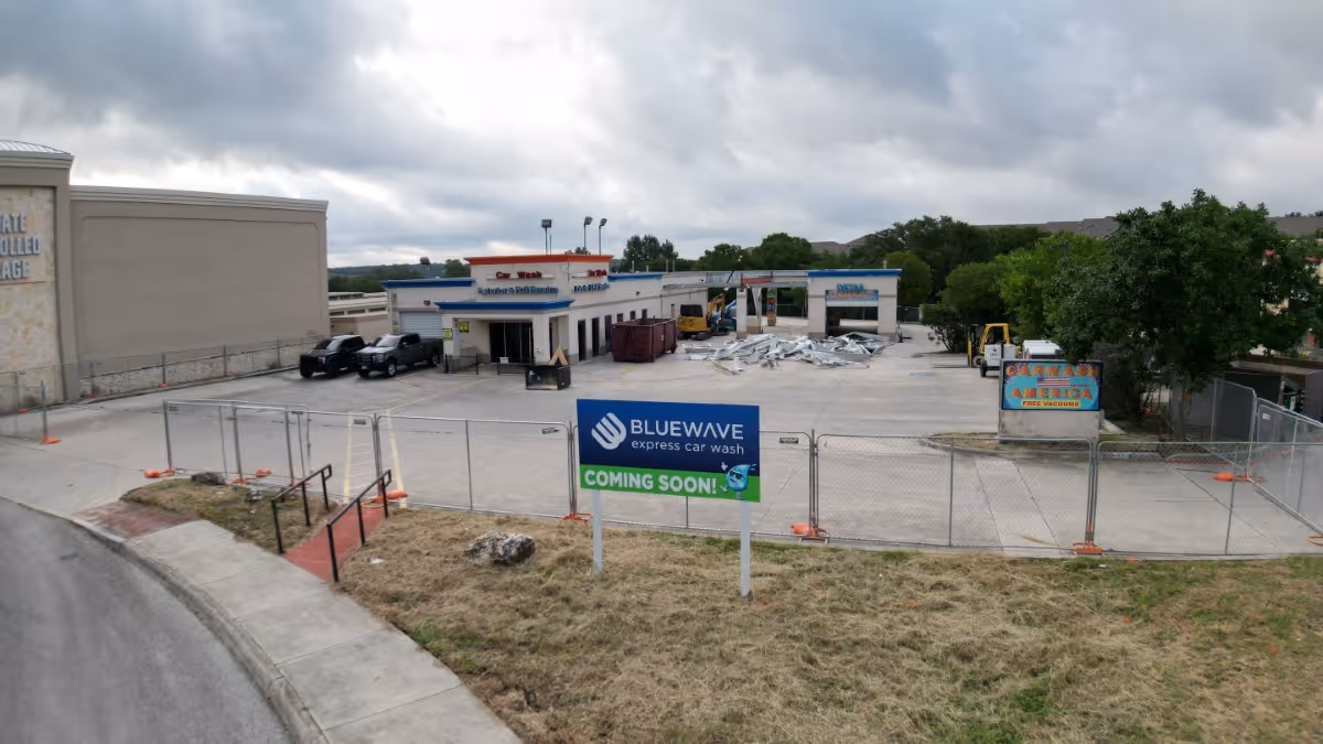 AEX provided concrete work and excavation for the BlueWave Carwash on Blanco Rd. Their services ensured a strong foundation and precise site preparation for the facility.